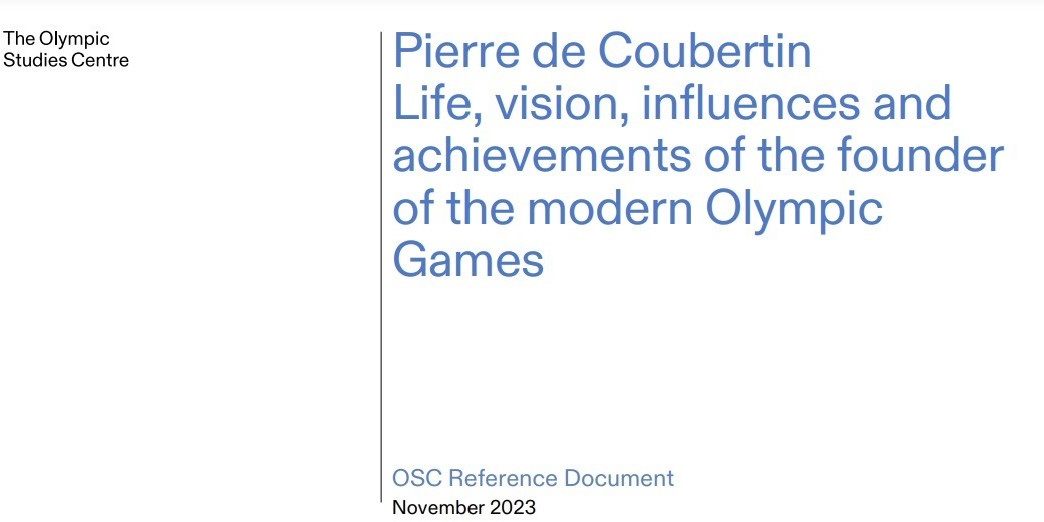 O Centro de Estudos Olímpicos (OSC) do Comitê Olímpico Internacional, publicou na última semana um novo Documento de Referência, nomeado “Pierre de Coubertin – Life, vision, influences and achievements of the founder of the modern Olympic Games” (Pierre de Coubertin – vida, visão, influências e conquistas do fundador dos Jogos Olímpicos da Era Moderna).